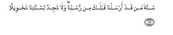 [77] This has always been our Way with the Messengers whom We sent before you.90 and you will find no change in Our way.