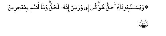 [53-56] Then they ask, "Is what you say really true ?" Tell them, "Yes by my Lord, it is absolutely true, and you have no power to avert it." And every person who has transgressed would gladly give all the wealth of the earth as ransom, if he possessed it, to redeem himself from the torment. When they will see the torment they will be remorseful in their hearts.59 And the judgment will be passed on them with justice and no wrong will be done to them. Listen! all that is in the heavens and the earth belongs to Allah. Note it well that Allah's word is true, yet most of them know it not. It is He Who ordained life and death, and to Him you shall all return.