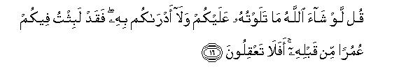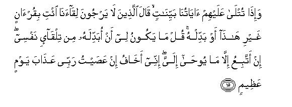 [15-17] When Our clear revelations are recited to them, those who do not expect to meet Us say, "Bring another Qur'an in its stead or make some amendment in it."19 O Muhammad, say to them, "It is not for me to make any alteration in it of my own accord. I follow only what is revealed to me. Indeed, if I disobey my Lord, I fear the chastisement of a dreadful Day."20 Say also, "Had Allah willed so, I would never have recited this Qur'an to you, nor would I have told you anything (about its existence). I have already lived a lifetime among you before its revelation. Do you not use your common-sense?21 And Who can be a greater sinner than the one who himself forges a lie and then ascribes it to Allah or falsifies22 His real Revelations? Indeed, criminals can never attain (true) success."23