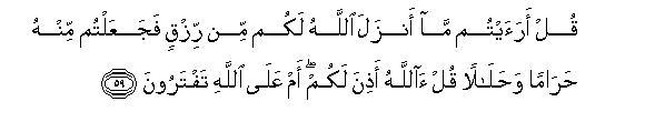 Thus it has become clear that the consequences of this misunderstanding about the meaning of rizq are far-reaching. As a result of this limited meaning of rizq, it will be sinful only to make the unlawful articles of food lawful and vice versa but it will not be sinful if the people become their own law-makers in regard to the social, economic, political and international matters. It is because of this misunderstanding that even some scholars of the Islamic Law do not consider it sinful if people do not take guidance from the "Shari'at" in regard to matters other than those of food; whereas in this verse, Allah has taken to task all those people, who arrogate to themselves the right of making lawful or unlawful not only the articles of food but anything that has been made lawful or unlawful by the "Shari'at."