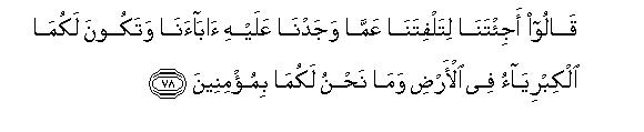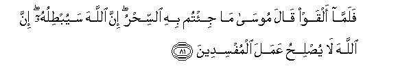 [75-82] Then after them We sent Moses and Aaron with Our Signs to Pharaoh and his chiefs.72 But they showed arrogance,73 for they were criminals. So when the Truth came to them from Us, they said, "This is clear sorcery.74 Moses replied, "What, do you call the Truth sorcery, when it has come to you? Is this sorcery? The fact is that sorcerers can never attain true success.75 In reply to this, they said, "Have you come to turn us away from the faith of our forefathers so that you two may dominate over the land?'76 We are not going to believe in what you say." And Pharaoh said (to his people), "Bring every expert sorcerer to me. "- When the sorcerers came, Moses said to them. "Cast down whatever you have to cast." When they cast down their appliances, Moses said to them, "This is sorcery what you have cast down:77 Allah will surely render it in vain for He does not let the plans of mischief-makers succeed. And Allah vindicates the Truth by His Commands, though the guilty ones may dislike it."