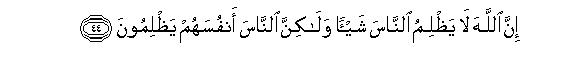 52"Allah does not in any way wrong the people" because He gives them ears to hear, eyes to see and hearts to feel and ponder, and everything that is required to enable them to discriminate between right and wrong, truth and falsehood. But it is "they who wrong themselves" by refusing to make the right and proper use of their faculties and by following their lusts and enjoying the things of this world. Naturally this has made their eyes so blind and their ears so deaf and their hearts so dead that they are incapable of distinguishing between right and wrong, good and bad, for their conscience has also become dead.