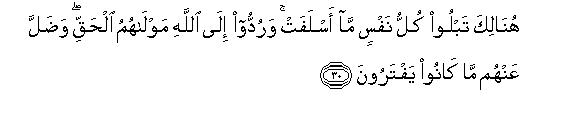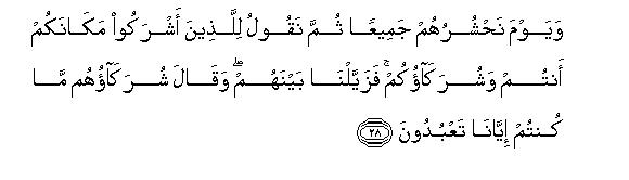 [29-33] “Allah suffices as a witness between you and us and (even if you worshiped us) we were utterly unaware of your worship”37 At that time everyone will taste of what he ,did. All shall be brought back to Allah, their real Lord, and all the lies they had invented would vanish from them.