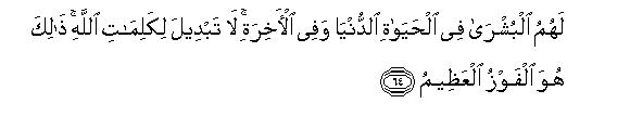 [61-65] O Prophet, We are witnessing whatever work you may be engaged in and whatever portion you may be reciting from the Qur'an; We are also keeping a watch, O people, over whatever you are doing: for there is not an iota of anything, small or big, in the earth and the heavens that is hidden from your Lord, and everything is on record in the clear Register.64 Listen: those, who are Allah's friends and who believe and fear God, shall have no occasion for fear or sorrow: there is nothing but good news for them in this world and in the Hereafter: Allah's words cannot be changed-this is the greatest success. O Prophet, let not their remarks grieve you, for honor wholly rests with Allah. He is the All-Hearing, the All-Knowing.