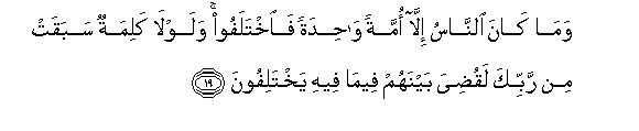 [19] In the beginning all the people were one community, but afterwards they invented different creeds and ways.25 And had not your Lord ordained a decree, that thing in which they differ would have been resolved.26