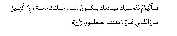 93That is, "We show Signs to the people over and over again so that these should serve as warnings and be the means of teaching them lessons, but it is a pity that they do not learn lessons even from such Signs as the dead body of Pharaoh."