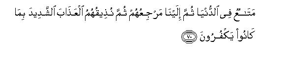 [68-70] They remarked," Allah has taken a son to Himself.66 Allah is All-Pure!67 He is Self-Sufficient: He is the Owner of everything that is in the heavens and the earth.68 Have you any authority for what you say? What! do you ascribe to Allah that of which you have no knowledge? O Prophet, say to them, "Those, who ascribe false things to Allah, can never prosper." Well, they may enjoy the transitory pleasures of this life, but after this they have to return to Us and then we will make them taste a severe torment because of this blasphemy they are committing.