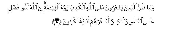 [57-60] O mankind, there has come to you the Admonition from your Lord: this is the remedy for the diseases of the heart, and guidance and blessing for those who believe in it. O Prophet, say, "It is the bounty of Allah and His mercy that He has sent this thing: let the people rejoice over it for it is better than what they amass." O Prophet, ask them, "Have you ever considered that you yourselves have made something unlawful and the other lawful out of what60 Allah has given you?"61 Then ask them, "Has Allah allowed you this or do you ascribe a false thing to Him?"62 What treatment do they think Allah will mete out to them who ascribe this false thing to Him on the Day of Resurrection ? Indeed Allah is bountiful to mankind, but most of them are not grateful.63