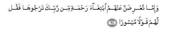 [28] 5. If you have to put them (the needy persons) off because you are still waiting for Allah's favor that you are expecting, put them off with tenderness.28