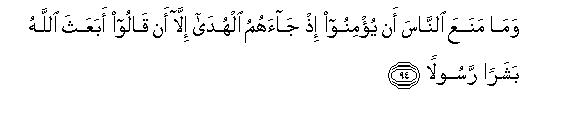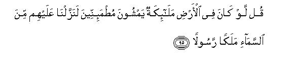 [94-95] Whenever Guidance came before the people nothing prevented them from believing in it except this (excuse): they said: "Did Allah send a human being as His Messenger?"107 Say to them, "Had angels settled on the Earth and moved about in peace, We would certainly have sent an angel as a Messenger to them."108