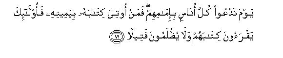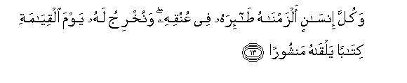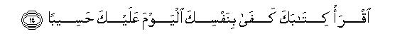 [13-14] We have fastened the augury of every man to his own neck,14 and on the Day of Resurrection We will bring forth a writing which he will find like an open book. (It will be said to him,) "Here is your record: read it. Today you yourself suffice as reckoner against yourself."