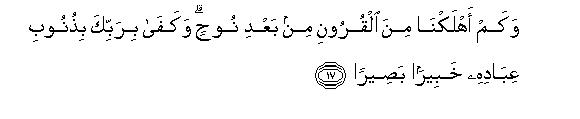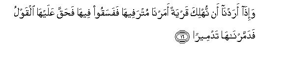[16-17] When We decree that a habitation should be destroyed, We give Commands to its well-to-do people and they show disobedience; then that habitation incurs just torment and We totally exterminate it.18 Just see how many generations have been destroyed by Our Command after Noah. Your Lord is fully aware of the sins of his servants and is seeing everything.