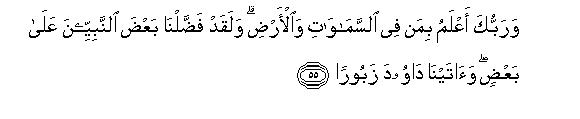 [55] Your Lord is fully aware of all the creatures in the heavens and the earth. We have exalted some Prophets above the others in ranks,62 and We gave the Psalms to David.63