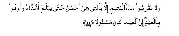 [34-35] 10. Do not go near the property of an orphan except in the best manner until he reaches the age of maturity.38