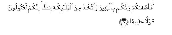 And behold! do not associate any other deity with Allah lest you should be cast into Hell reproached and deprived of every good45 What! has your Lord favored you with sons and adopted angels as daughters for Himself?46 Indeed it is a big lie that you are uttering.