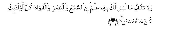 [36] 13. Do not follow that of which you have no knowledge for you shall be questioned for (the use) of your eyes, ears and minds.42