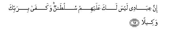 81That is, "Those who will trust in Allah and believe in His guidance and help, will not stand in need of any other support in their trial by Satan for Allah will guide them, protect them and help them to be safe from his allurements. On the other hand, those people, who will place their trust in their own power or that of any other than Allah, will not come out successful in their trial by Satan."
