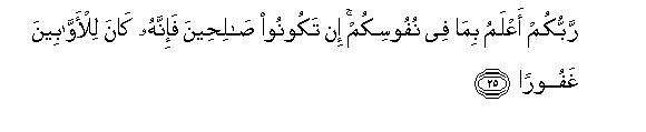 [25-27] Your Lord best knows what is in your minds. if you live righteously, He surely forgives and turns towards all such people as are penitent and obedient.27