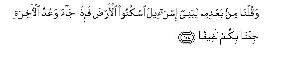 [101-104] And We gave to Moses nine Signs which were quite manifest.113 Now you yourself may inquire from the children of Israel about it: when those Signs came before Pharaoh, he uttered these very words: “O Moses, I consider you to be a bewitched man.”114 Moses replied, “You know it full well that none but the lord of the Heavens and the earth had sent down these signs as eye-openers,115 and O Pharaoh, I consider you indeed to be a doomed person.”116 At last Pharaoh resolved to uproot Moses and the Israelites from the land but We drowned him and his followers all together. Then we said to the Israelites, “Now you should settle down in the land117 and when the prescribed time of Resurrection comes about, We will gather all of you together.”
