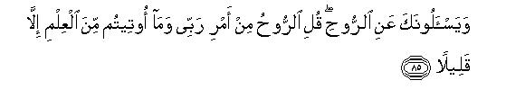 [85] They ask you about "The Spirit."103 Say, "This Spirit comes by the command of my Lord, but you have been given only a little of the Knowledge."