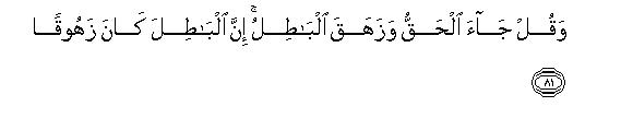 [81] And declare, "The Truth has come and falsehood has vanished: for falsehood is a thing that must by its nature vanish."101