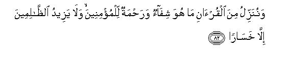 102That is, "Those people who make the Qur'an their guide and their book of law, are favored with the blessing of Allah and arc cured of all their mental, psychological, moral. and cultural diseases. On the other hand, those wicked people who reject this and turn their back on its guidance, in fact, are unjust to themselves. Therefore, the Qur'an does not allow them to remain even in that bad condition in which they were before its revelation or its knowledge but involves them in a greater loss than before. This is because before the revelation of the Qur'an or their acquaintance with it, they suffered from ignorance alone but when the Qur'an came before them and made distinct the difference between Truth and falsehood, no excuse was left with them to remain in their previous condition of. ignorance. After this, if they reject its guidance and persist in their deviation, it is a clear proof that they are not ignorant but workers of iniquity and worshipers of falsehood, which arc averse to the Truth. For then their position is of the one who, when presented both poison and elixir, makes a choice of poison. Therefore, they themselves are in that cast fully responsible for their deviation and whatever crimes they commit after that, shall incur their full punishment. It is obvious that the consequent loss of wickedness must be far greater than the loss of ignorance. The Holy Prophet has summed this up in this concise and comprehensive sentence: "The Qur'an is either an argument in your favor or against you."