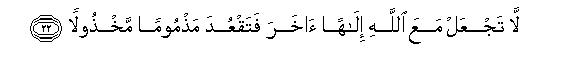 [22] Do not associate another deity with Allah,24 otherwise you shall he reduced to a state of ignominy and helplessness.