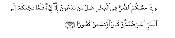 [66-68] Your (real) Lord is the One, Who drives your ship across the sea82 so that you may seek His bounty.83 The fact is that He is very merciful towards you. When a misfortune befalls you on the sea, all of those whom you invoke for help fail you but He (is there to help you84 ): yet when He brings you safe to land, you turn away from Him. Indeed man is very ungrateful. What, do you feel quite secure that sometimes Allah would not cause you to sink underground even on land, or send a deadly whirlwind charged with stones toward you, and you may not find anyone to protect you from it?